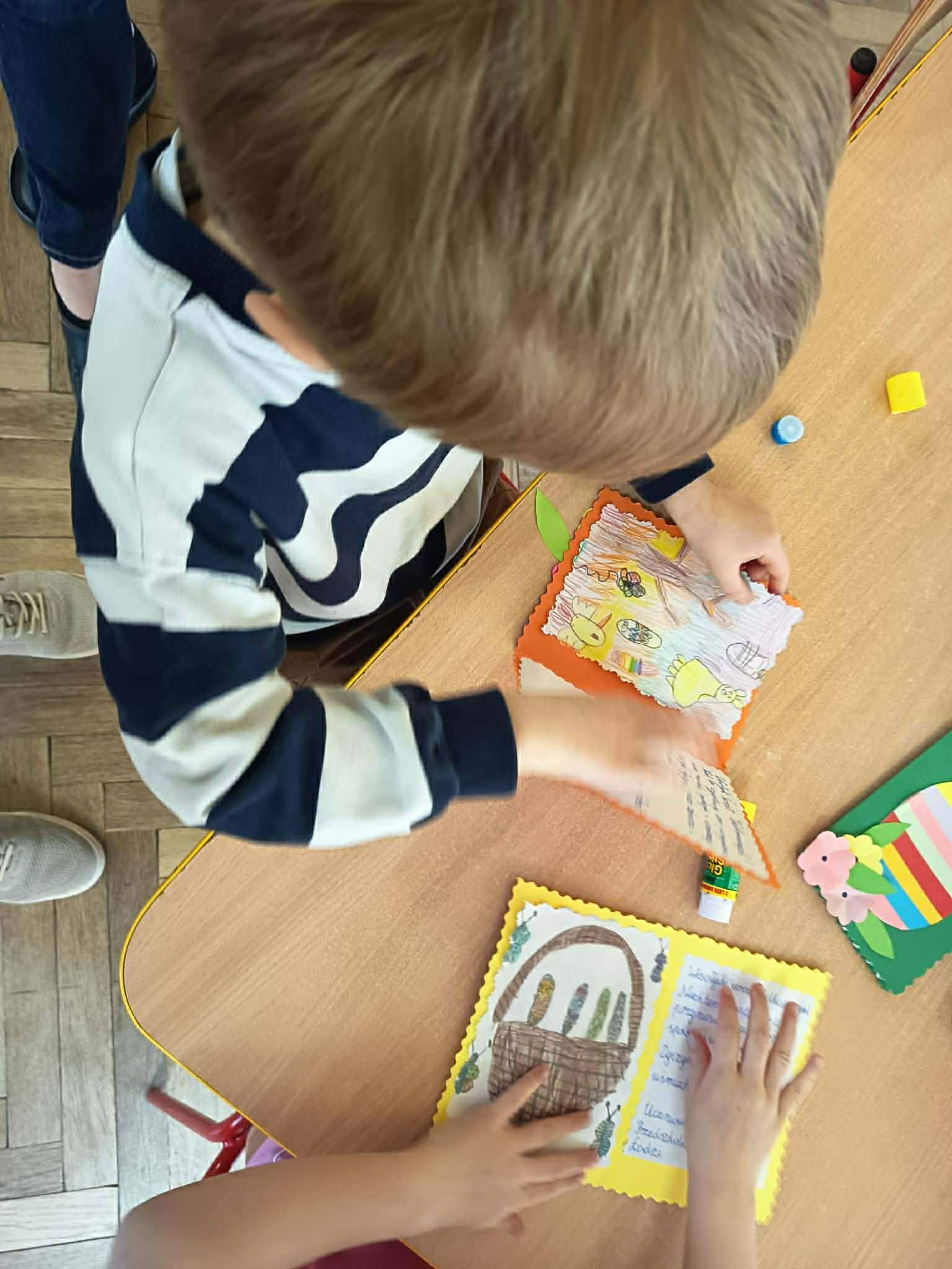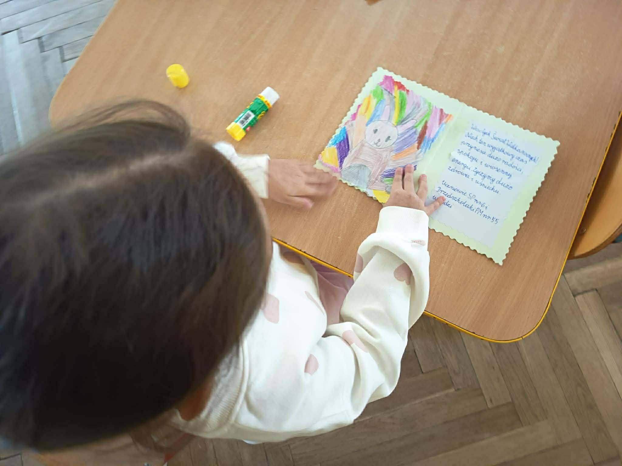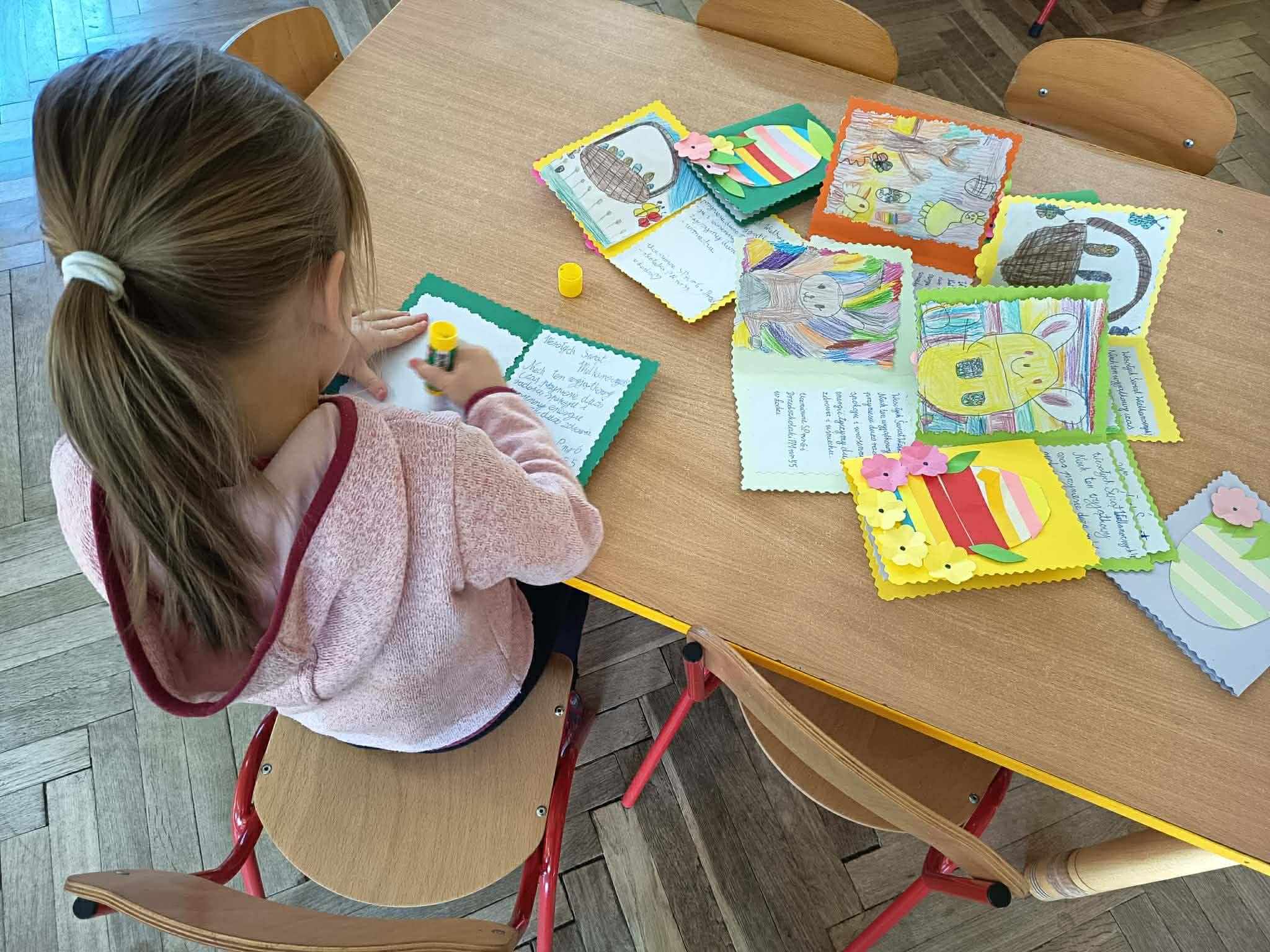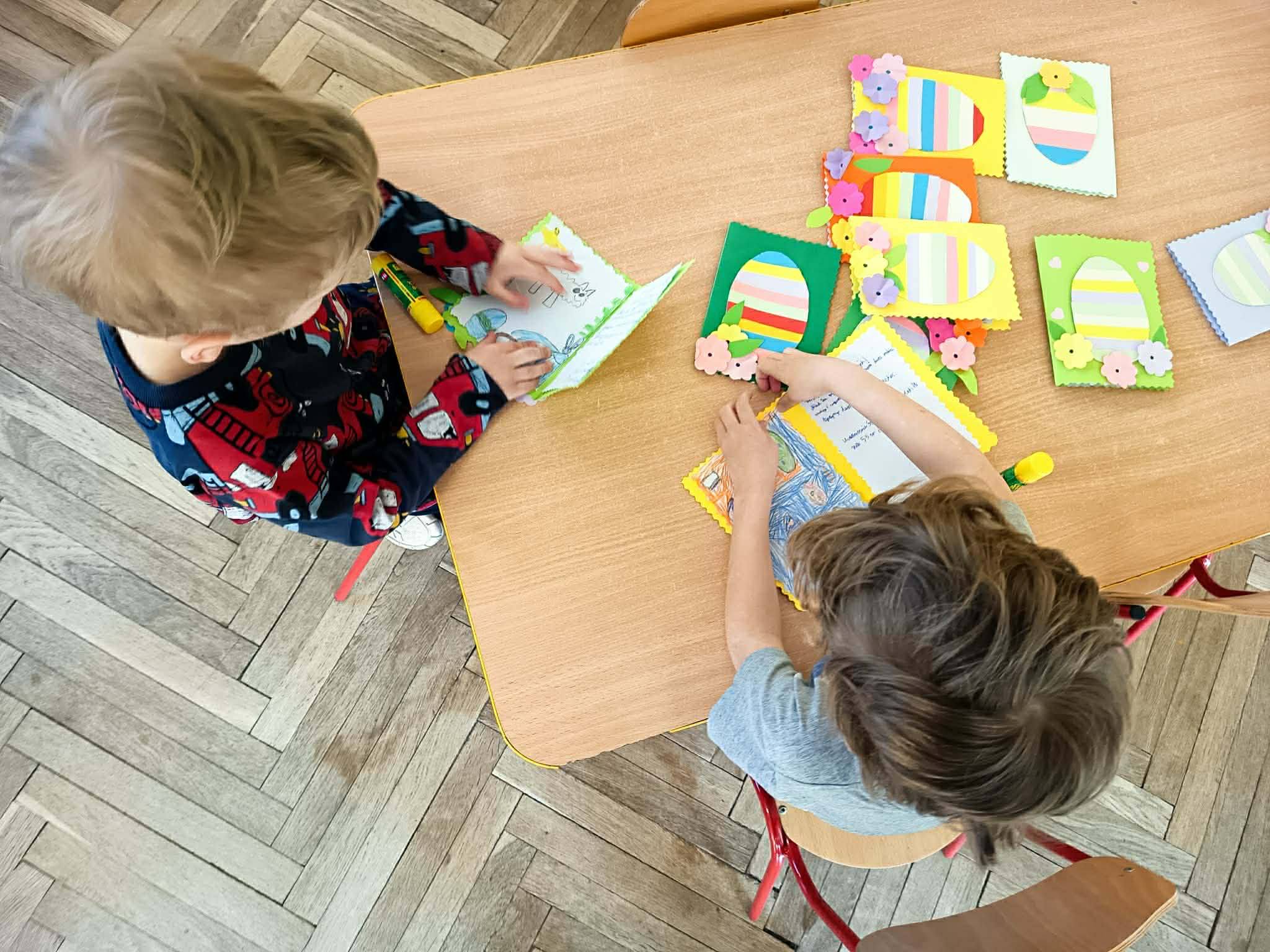 Szczególnie ważnym elementem była współpraca z Przedszkolem nr 55. Wspólnie przygotowaliśmy kartki wielkanocne z życzeniami dla seniorów – uczniowie wykonali kartki, a dzieci z przedszkola pięknie je ozdobiły. Była to wspaniała okazja do współdziałania oraz budowania relacji między młodszymi i starszymi dziećmi.