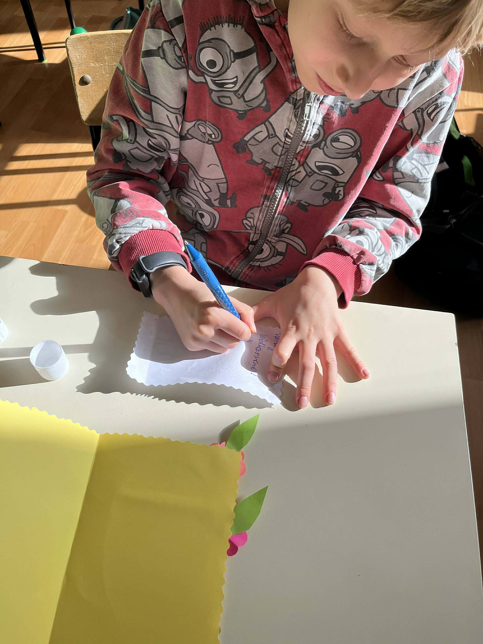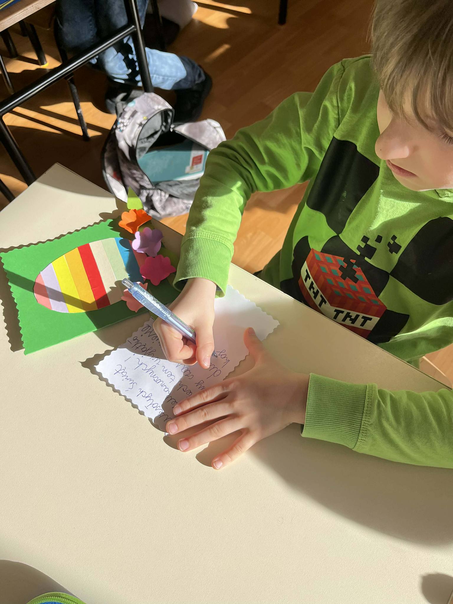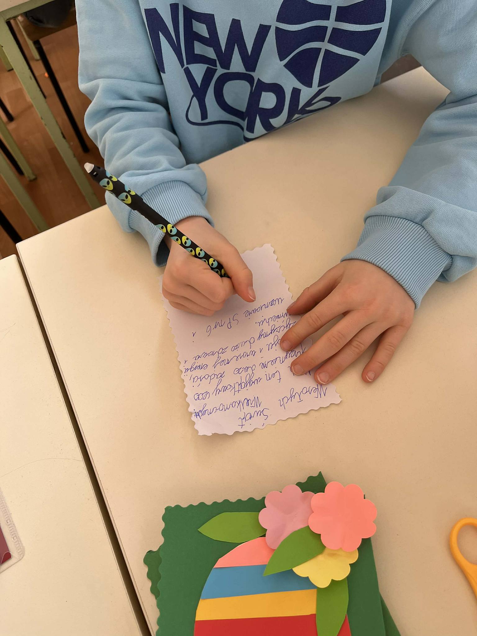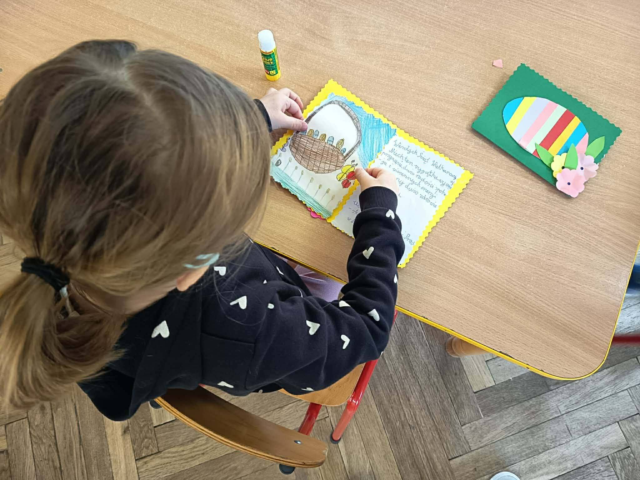 Szczególnie ważnym elementem była współpraca z Przedszkolem nr 55. Wspólnie przygotowaliśmy kartki wielkanocne z życzeniami dla seniorów – uczniowie wykonali kartki, a dzieci z przedszkola pięknie je ozdobiły. Była to wspaniała okazja do współdziałania oraz budowania relacji między młodszymi i starszymi dziećmi.