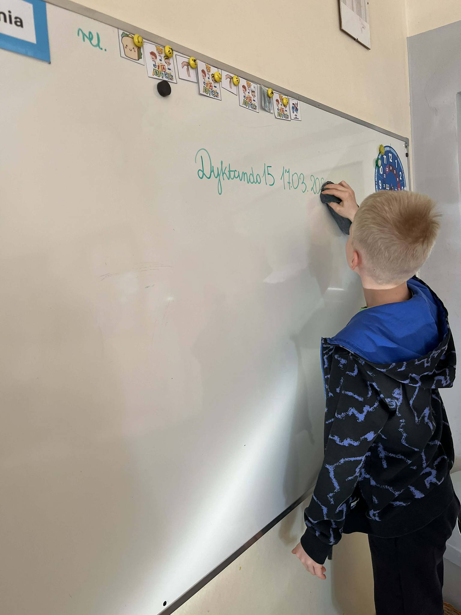 Podczas „15 minut odpowiedzialności bez przypominania” uczniowie pamiętali o swoich obowiązkach wynikających z pełnionych funkcji w klasie. Dzieci samodzielnie wykonywały zadania, takie jak ustawianie kalendarza, zegara, podlewanie roślin, czy też planowanie pracy.