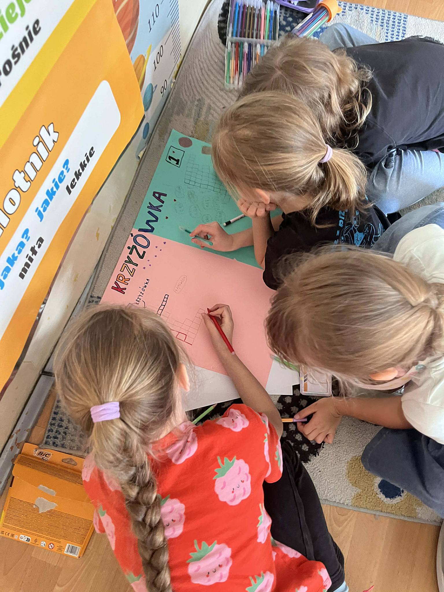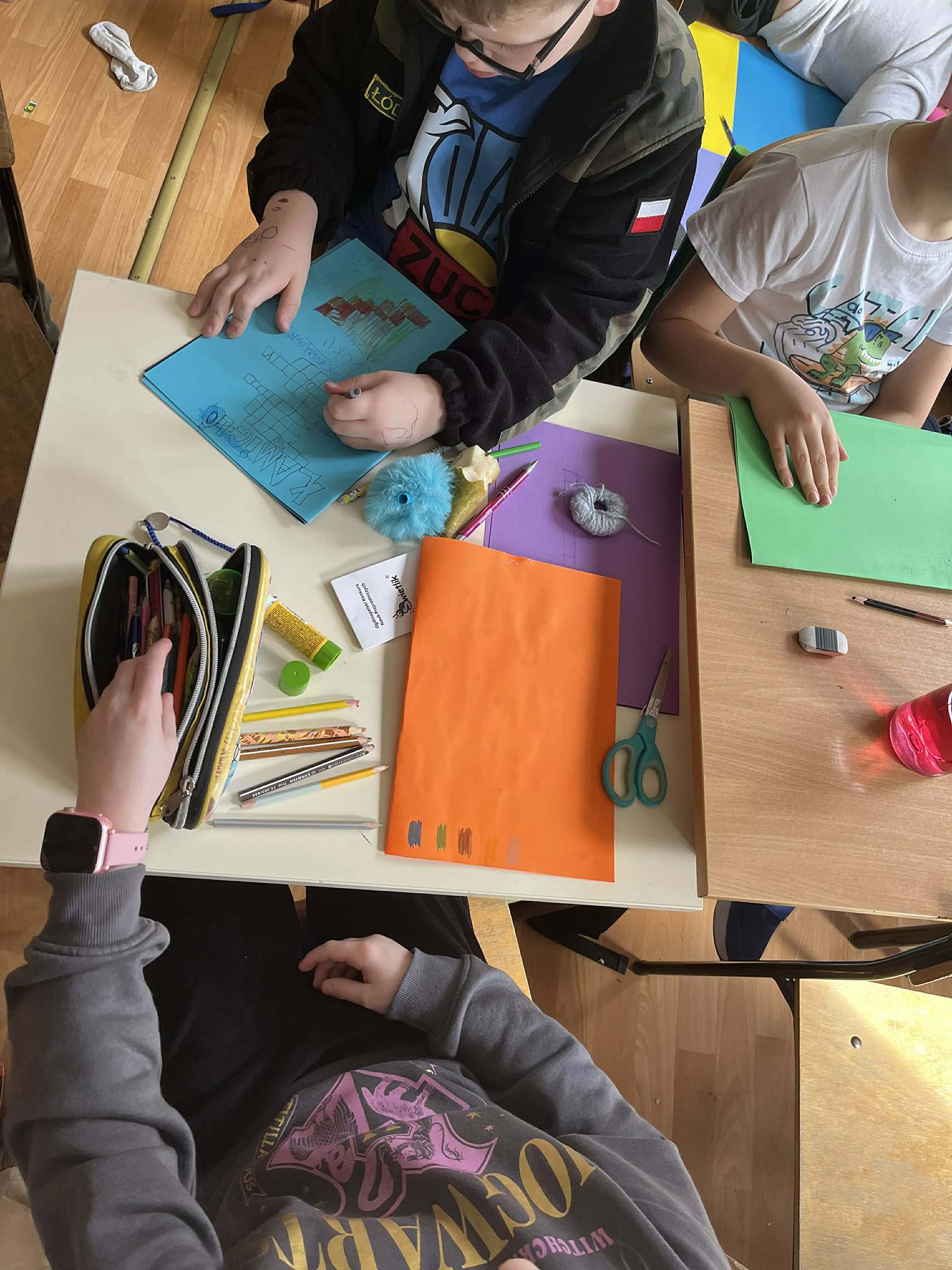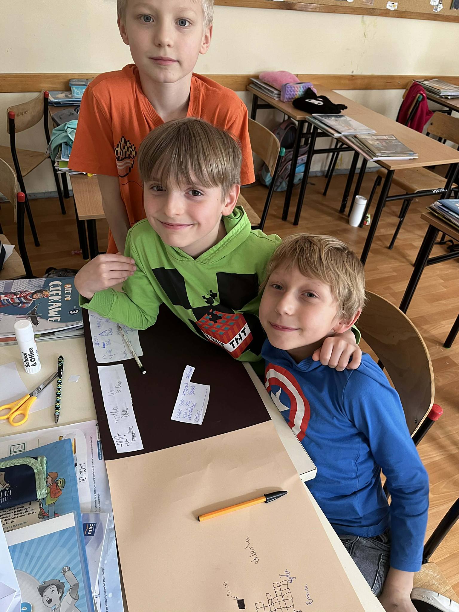 Dużą rolę odegrała również współpraca w grupach. Uczniowie wspólnie przygotowywali plakaty, dzielili się zadaniami, wymieniali pomysłami i razem opracowywali informacje. Była to świetna okazja do rozwijania komunikacji, kreatywności oraz umiejętności pracy zespołowej. Wspólna praca pokazała, że uczniowie potrafią świetnie organizować swoje działania i współpracować ze sobą.