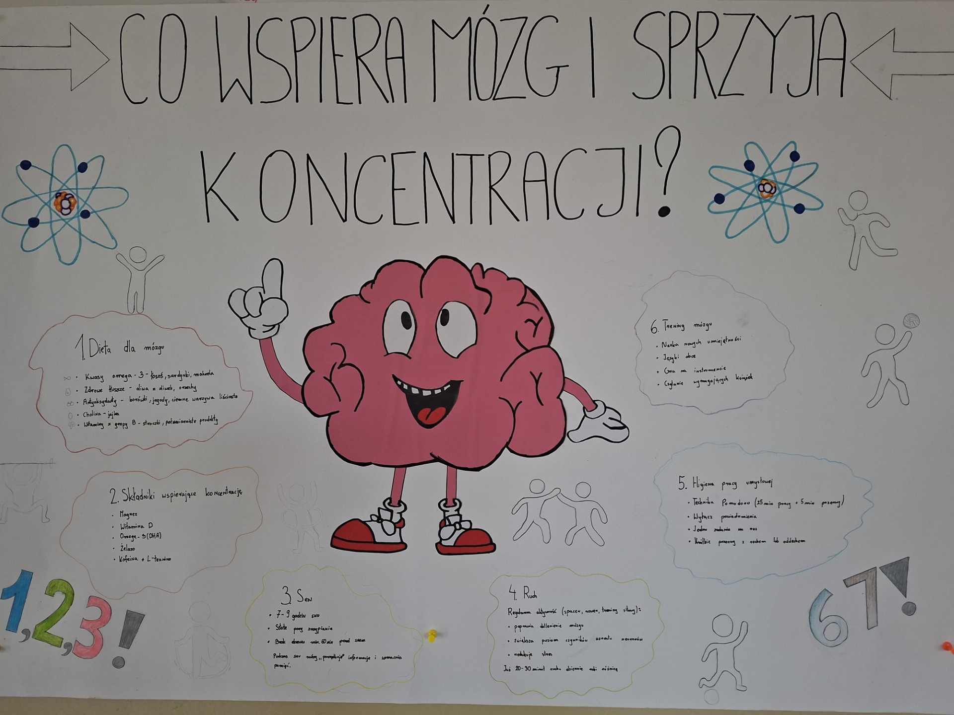 Nie zabrakło również rozmów na temat tego, jak dbać o jego prawidłowe funkcjonowanie – od zdrowej diety, przez aktywność fizyczną, aż po odpowiednią ilość snu. W ramach lekcji wychowania fizycznego uczniowie uczestniczyli także w zabawach ruchowych, które pokazały, jak ważny jest ruch dla pracy mózgu i koncentracji.