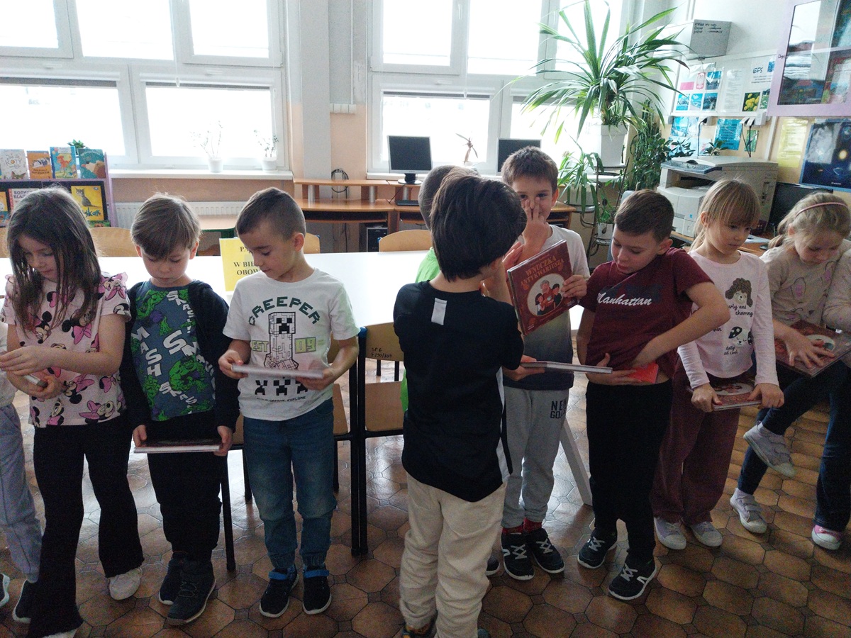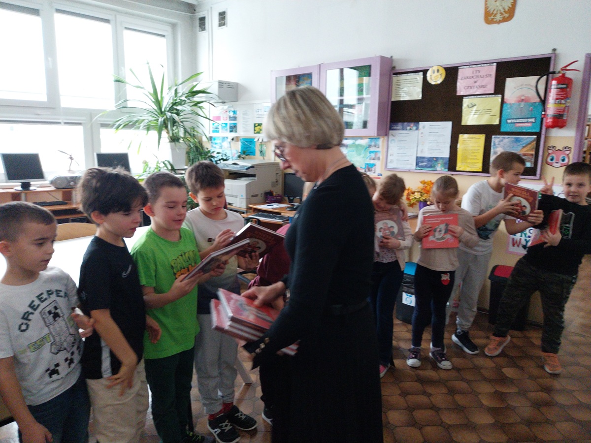 27 listopada 2025 r. w bibliotece szkolnej pierwszoklasiści nieodpłatnie otrzymali "Wyprawki czytelnicze" w ramach kampanii "Mała książka- wielki człowiek".